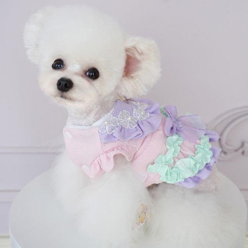 Sweet Flower Layered Color Block Dog Cat Dress