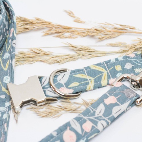 Teal meadows dog collar is a perfect fabric for a gentle pup who also wants to have some style in their life. This fabric is perfect for all year wearing. The words Cute – Soft – Floral come to mind.