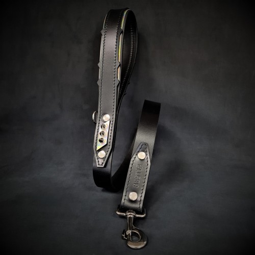 It has a unique handmade design. The black base layer and the fashionable Italian leather are put together nicely giving the collar exclusive looks. It has a decoration of 12 mm (1/2″) long nickel-plated, silver color screw-back spikes.