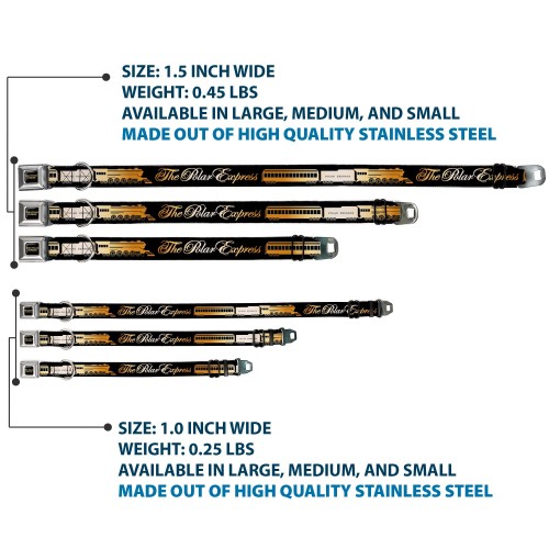 THE POLAR EXPRESS Text Logo Full Color Black/Golds Seatbelt Buckle Collar – POLAR EXPRESS Train Cars Black/Golds