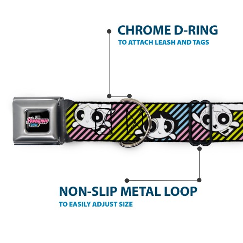 THE POWERPUFF GIRLS Animated Series Title Logo Full Color Black Seatbelt Buckle Collar – The Powerpuff Girls and Donny Stripe Black/Multi Pastel