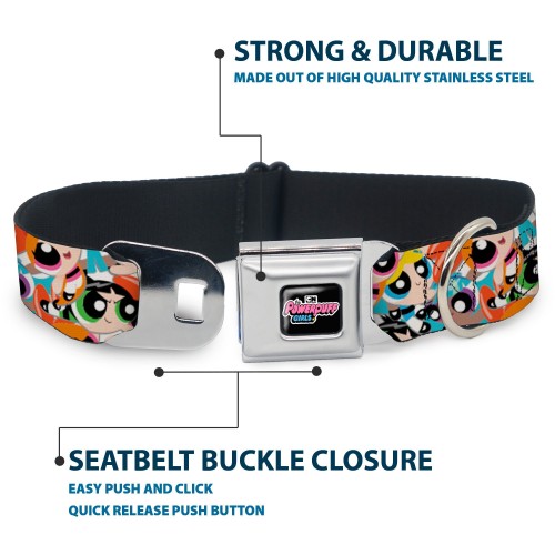 THE POWERPUFF GIRLS Animated Series Title Logo Full Color Black Seatbelt Buckle Collar – The Powerpuff Girls Expressions Stacked