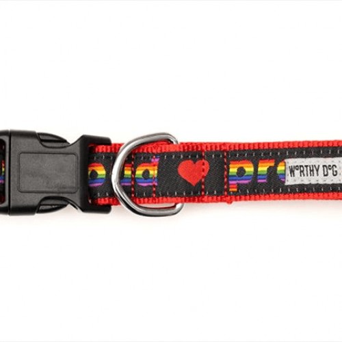 The Worthy Dog’s collars are focused on style AND durability! This adjustable collar features woven ribbon sewn onto comfortable and strong nylon webbing with a secure side release snap clasp and nickel-plated D-ring to attach tags or lead.