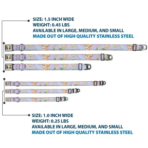 Tinker Bell CLOSE-UP Full Color Seatbelt Buckle Collar – Tinker Bell Poses Purple/Pink Fade
