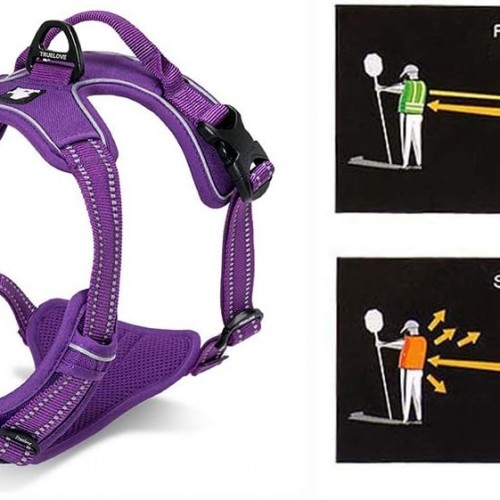 - Safety your features include Nylon webbing with reflective material for Good visibility at night and Sturdy handle for easy seat belt attachment while riding in your car.reflective Nylon webbing ensure good visibility for this high-end Dog Harness.