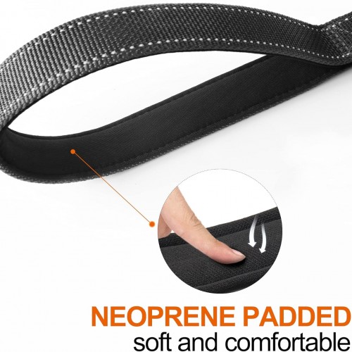 TwoEar 4FT 1IN Strong Black Dog Leash with 2 Padded Handles, Traffic Handle Extra Control, Comfortable Soft Dual Handle, Auto Lock Hook, Reflective Walking Lead for Small Medium and Large Dogs