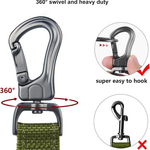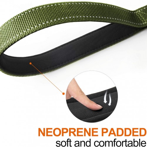 - 【SOFT PADDED DUAL HANDLES】5FT ideal length, 1 inch width leash for medium dogs, Comfortable Padded handles protect your hand without rope burn. Extra Handle for traffic control. Green dog leash is perfect for outdoor activities, running, walking or training.