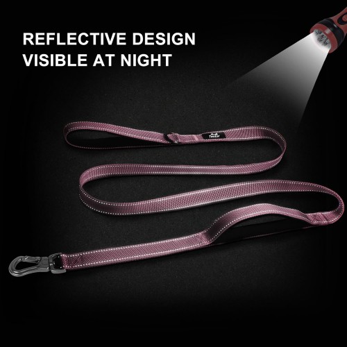 TwoEar 5FT 1IN Strong Pink Dog Leash with 2 Padded Handles, Traffic Handle Extra Control, Comfortable Soft Dual Handle, Auto Lock Hook, Reflective Walking Lead for Small Medium and Large Dogs
