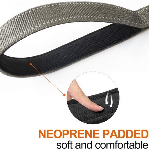 - 【SOFT PADDED DUAL HANDLES】6FT ideal length, 1 inch width leash for medium dogs, Comfortable Padded handles protect your hand without rope burn. Extra Handle for traffic control. Gray dog leash is perfect for outdoor activities, running, walking or training.