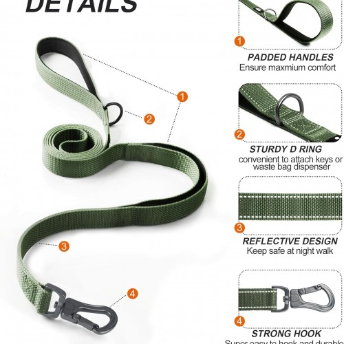 - 【SOFT PADDED DUAL HANDLES】6FT ideal length, 1 inch width leash for medium dogs, Comfortable padded handles protect your hand without rope burn. Extra handle for traffic control. Green dog leash is perfect for outdoor activities, running, walking or training.