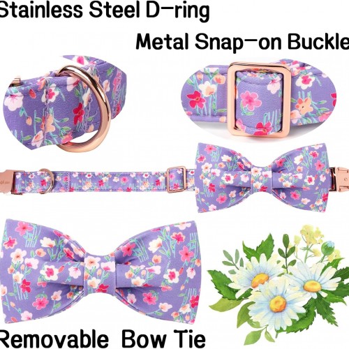 Unique style paws Cartoon Dog Collar with Bow Spring Summer Collar with Mutiflower for Small Medium Large Boys Girls Dogs