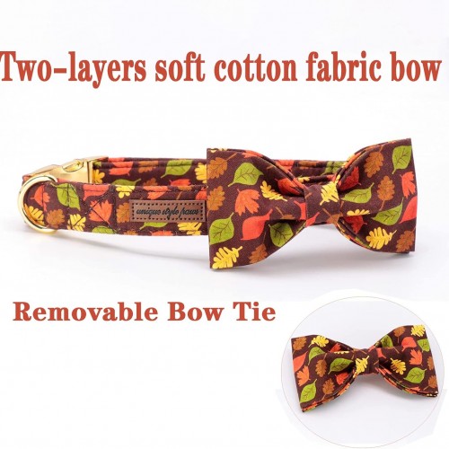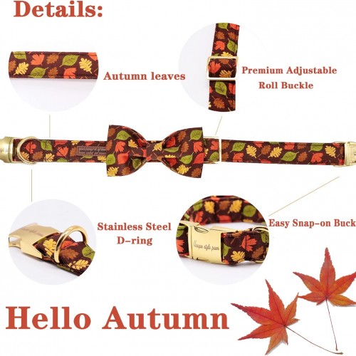 Unique style paws Fall Dog Collar with Bow, Puppy Collar Pet Gift Adjustable Dog Collar Soft and Comfy Bowtie Collars for Large Girl or Boy Dogs
