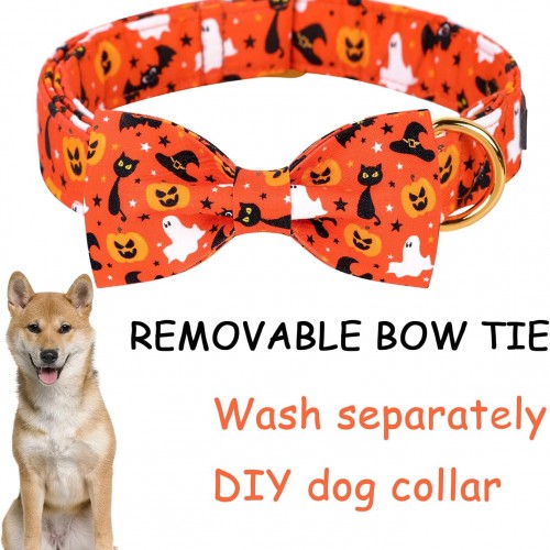 - ♥ Removable Bow Tie ♥ : The bow tie of the Christmas, Thanksgiving, Halloween dog collar is detachable. The tie has two elastic band , pass the tie through the dog collar or tie it to any other collar. You can DIY your dog collar.