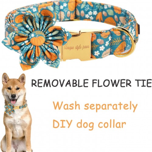 Unique style paws Halloween Dog Collar with Flower Tie Pumpkin Cotton Collar Adjustable Puppy Collar for Small Medium Large Dogs-M