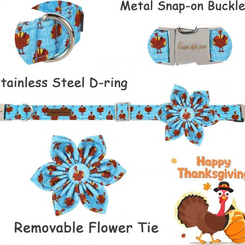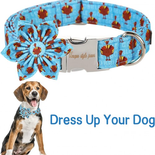 Unique style paws Thanksgiving Dog Collar with Flower Tie Autumn Turkey Theme Puppy Collar for Small Medium Large Dogs-XS