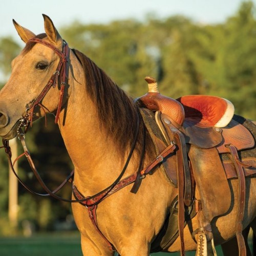 Crafted from chestnut leather and carved with an intricate floral design highlighted with black stain. Features non-rust stainless steel hardware