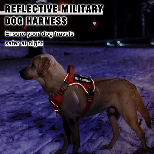 - 【Reflective Straps & Sturdy Handle】Reflective straps of this easy control harness ensure your dog’s safety while out for a walk even at night by alerting pedestrians and vehicles; Sturdy Fabric Handle on the back helps you better control and assist your dog. This no pull dog harness is made with enhanced 1680D oxford fabric with high density to prevent from chewing or tearing up. Breathable mesh lining with soft sponge padding plate of this dog harness providing extra comfort and protection.