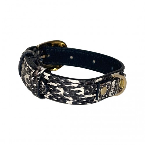 XS Black & White Snake 7-14 Collar/Custom Gold Oval Italian