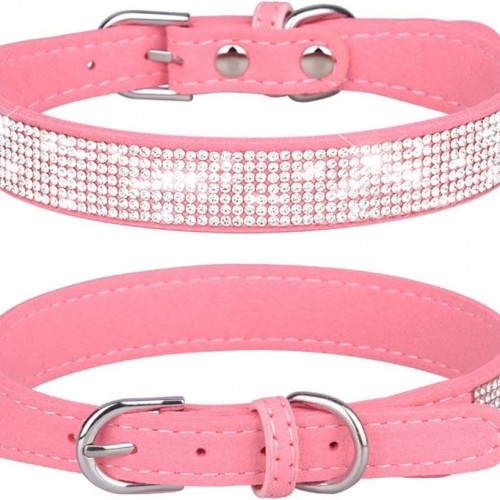 Xs Dog Collar Girl, Extra Small Dog Collar with Rhinestones, Pretty Diamond Fancy Crystal Glitter Jewel Bling Puppy Collars for Small Medium Large Breed Pet Female Dogs Cats Kitten, Pink XSmall