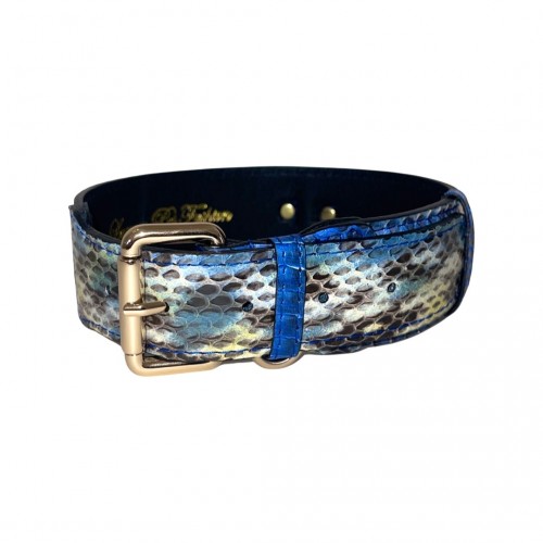 Electric/Turquoise Blue & Black Snake Classic Collar With Gold Classic Hardware