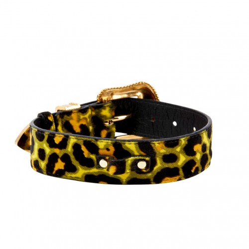 Be the first to review “Yellow, Green, Black, Orange Leopard Print Hair On Hide Italian Leather Collar, With Swarovski Crystal Hardware” Cancel reply