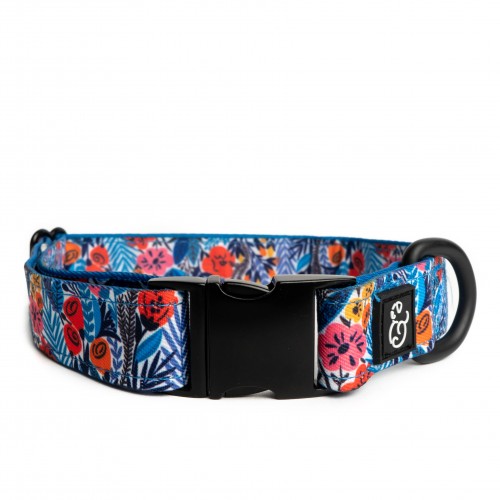 Royal Blue/Embossed Croc Italian Leather Classic Collar With Silver Classic Hardware