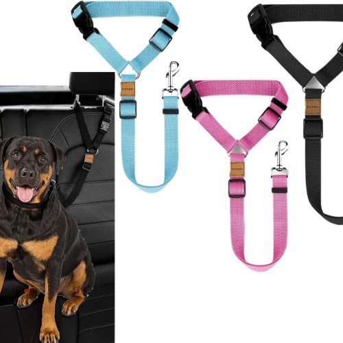 3 Pack Dog Seat Belt for Car, Car Headrest Restraint Adjustable Nylon Fabric, Dog Restraints Vehicle Seatbelts Harness