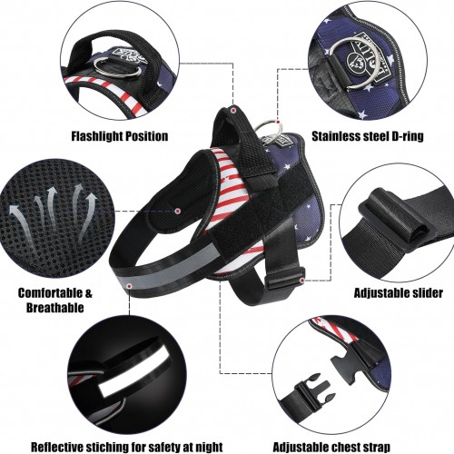 Bolux Dog Harness, No-Pull Reflective Dog Vest, Breathable Adjustable Pet Harness with Handle for Outdoor Walking – No More Pulling, Tugging or Choking (Flag, Small)