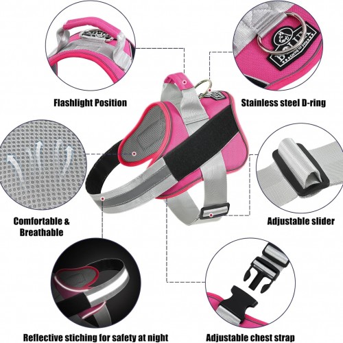 Bolux Dog Harness, No-Pull Reflective Dog Vest, Breathable Adjustable Pet Harness with Handle for Outdoor Walking – No More Pulling, Tugging or Choking (Fuchsia, Large (Pack of 1))