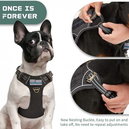 BUMBIN Tactical Dog Harness for Small Dogs No Pull, Famous TIK Tok No Pull Puppy Harness, Fit Smart Reflective Pet Walking Harness for Training, Adjustable Dog Vest Harness with Handle Black S