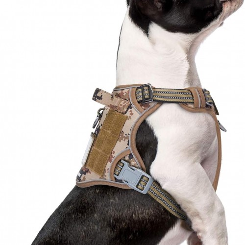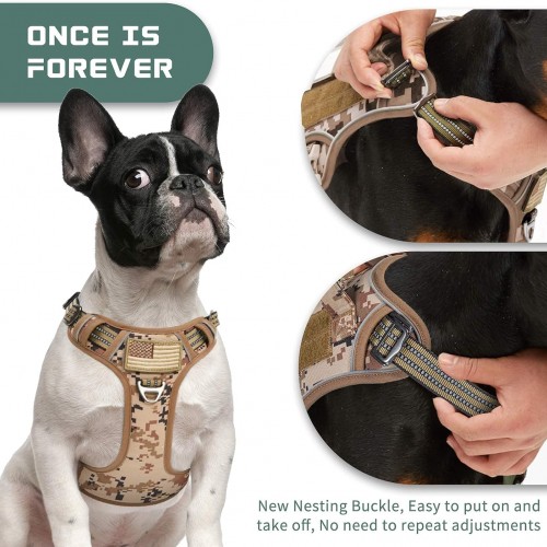 BUMBIN Tactical Dog Harness for Small Dogs No Pull, Famous TIK Tok No Pull Puppy Harness, Fit Smart Reflective Pet Walking Harness for Training, Adjustable Dog Vest Harness with Handle Desert Camo S