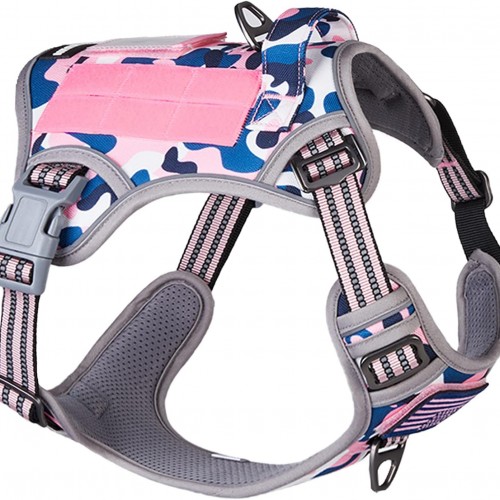 BUMBIN Tactical Dog Harness for Medium Dogs No Pull, Famous TIK Tok No Pull Dog Harness, Fit Smart Reflective Pet Walking Harness for Training, Adjustable Dog Vest Harness with Handle Pink Camo M