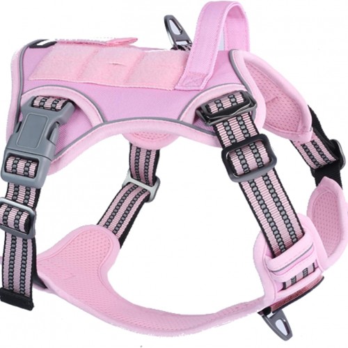 BUMBIN Tactical Dog Harness for Medium Dogs No Pull, Famous TIK Tok No Pull Puppy Harness, Fit Smart Reflective Pet Walking Harness for Training, Adjustable Dog Vest Harness with Handle Pink M