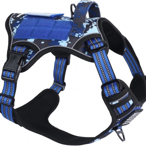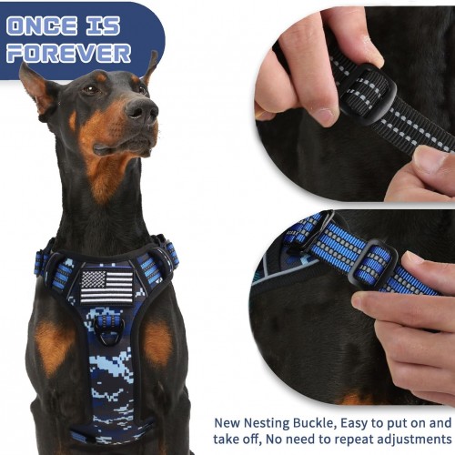BUMBIN Tactical Dog Harness for Small Dogs No Pull, Famous TIK Tok No Pull Puppy Harness, Fit Smart Reflective Pet Walking Harness for Training, Adjustable Dog Vest Harness with Handle Blue Camo XL