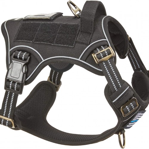 BUMBIN Tactical Dog Harness for Medium Dogs No Pull, Famous TIK Tok No Pull Puppy Harness, Fit Smart Reflective Pet Walking Harness for Training, Adjustable Dog Vest Harness with Handle Denim Blue M