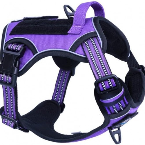 BUMBIN Tactical Dog Harness for Medium Dogs No Pull, Famous TIK Tok No Pull Puppy Harness, Fit Smart Reflective Pet Walking Harness for Training, Adjustable Dog Vest Harness with Handle Purple M