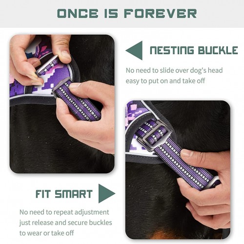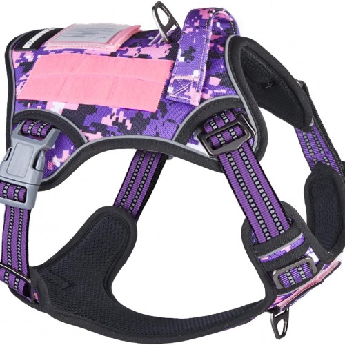 BUMBIN Tactical Dog Harness for Small Dogs No Pull, Famous TIK Tok No Pull Puppy Harness, Fit Smart Reflective Pet Walking Harness for Training, Adjustable Dog Vest Harness with Handle Purple Camo S