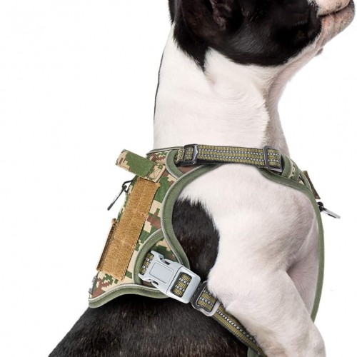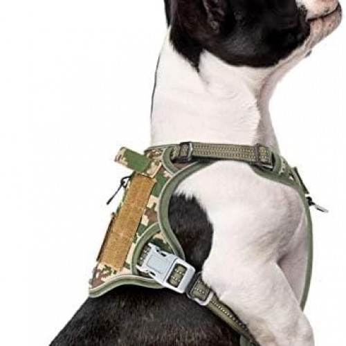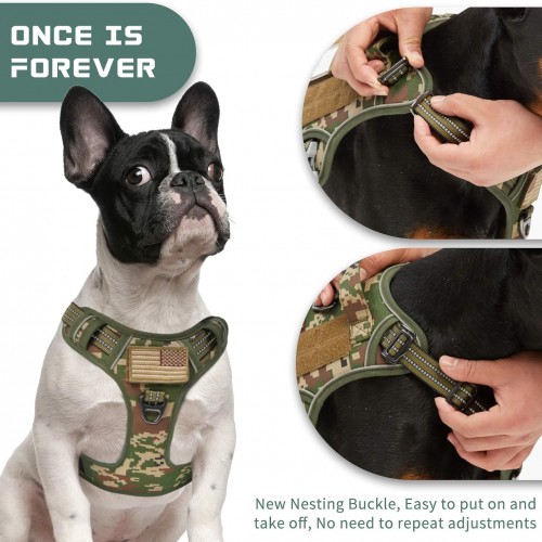 BUMBIN Tactical Dog Harness for Small Dogs No Pull, Famous TIK Tok No Pull Puppy Harness, Fit Smart Reflective Pet Walking Harness for Training, Adjustable Dog Vest Harness with Handle Forest Camo S