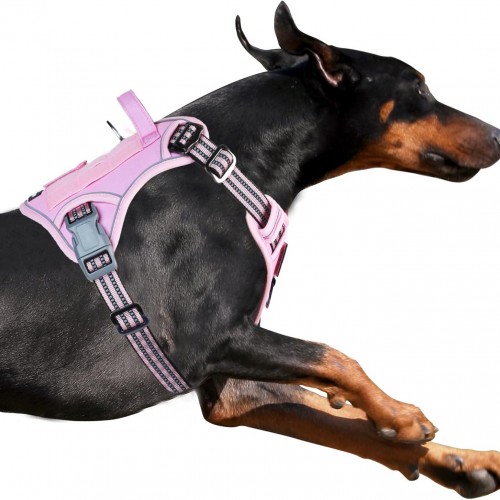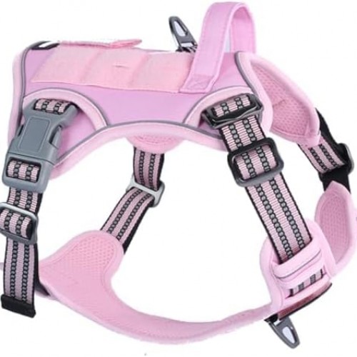 BUMBIN Tactical Dog Harness for Small Dogs No Pull, Famous TIK Tok No Pull Puppy Harness, Fit Smart Reflective Pet Walking Harness for Training, Adjustable Dog Vest Harness with Handle Pink XL