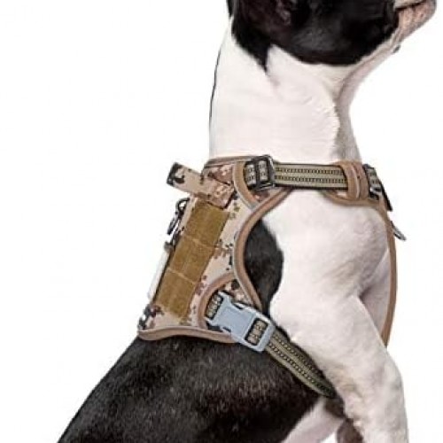 BUMBIN Tactical Dog Harness for Small Dogs No Pull, Famous TIK Tok No Pull Puppy Harness, Fit Smart Reflective Pet Walking Harness for Training, Adjustable Dog Vest Harness with Handle Desert Camo XS
