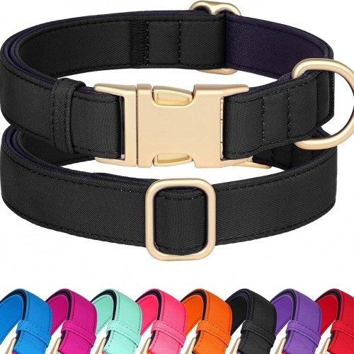 Didog Soft Padded Dog Collars for Medium Dogs, Colorful and Durable Dog Collar with Quick Release Buckle, Light and Breathable for Daily Walking, Black, M