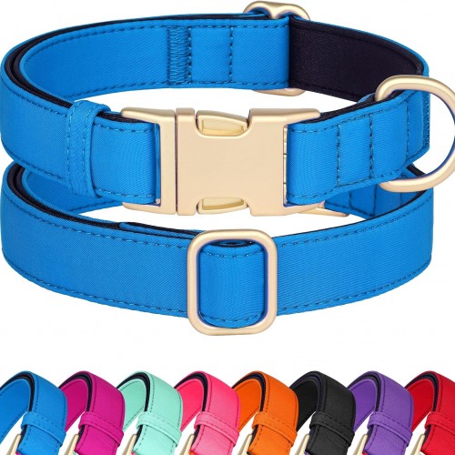 Didog Soft Padded Dog Collars for Medium Dogs, Colorful and Durable Dog Collar with Quick Release Buckle, Light and Breathable for Daily Walking, Blue, M