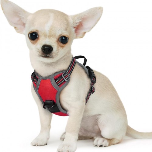 Eagloo Small Dog Harness No Pull, Service Vest with Reflective Strips and Control Handle, Adjustable and Comfortable for Easy Walking, No Choke Pet Harness with 2 Metal Rings, Red, XS