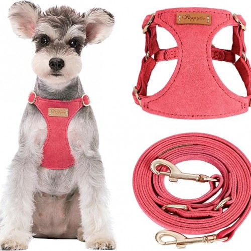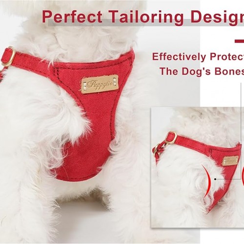 Puppytie No Pull Small Dog Harness with Multifunction Dog Leash,Lightweight Soft Adjustable No Choke Escape Proof Pet Harness Vest Pet Harness Vest,red-Camellia,S
