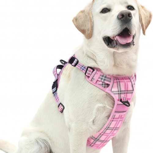 PUPTECK No Pull Dog Harness for Large, Adjustable Reflective Dog Harness with Handle Easy Control, Comfortable Soft Padded Pet Vest Harness for Large Dogs, Plaid Pink L