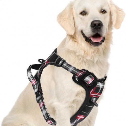 PUPTECK No Pull Dog Harness for Large, Adjustable Reflective Dog Harness with Handle Easy Control, Comfortable Soft Padded Pet Vest Harness for Large Dogs, Plaid Black XL