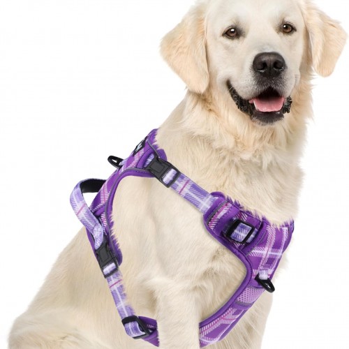 PUPTECK No Pull Dog Harness for Large, Adjustable Reflective Dog Harness with Handle Easy Control, Comfortable Soft Padded Pet Vest Harness for Large Dogs, Plaid Purple XL