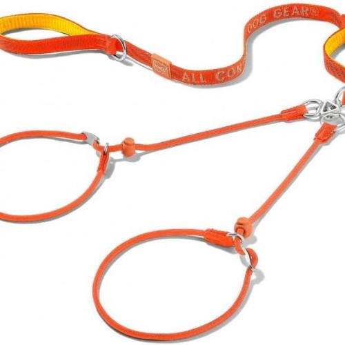 Howgo Double Slip Leash Slip Lead with Two Handles| Dual Dog Slip Lead for 2 Dogs,360° Swivel No Tangle | Dog Training Collar | Double Clip Leash Coupler and Splitter (Orange, 3FT)