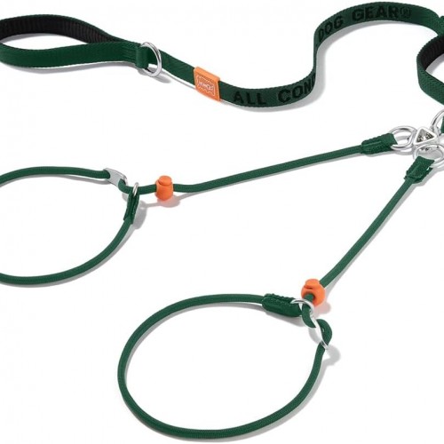 Howgo Double Slip Leash Slip Lead with Two Handles| Dual Dog Slip Lead for 2 Dogs,360° Swivel No Tangle | Dog Training Collar | Double Clip Leash Coupler and Splitter (Green, 6FT)