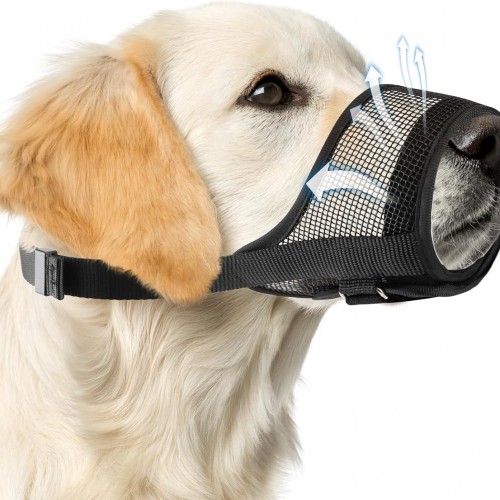 Dog Muzzle, Soft Mesh Muzzle for Large Dog Mouth Guard, Breathable Adjustable Muzzles to Prevent Biting, No Bark Muzzle for Dogs Allow Panting Drinking (Black, L)